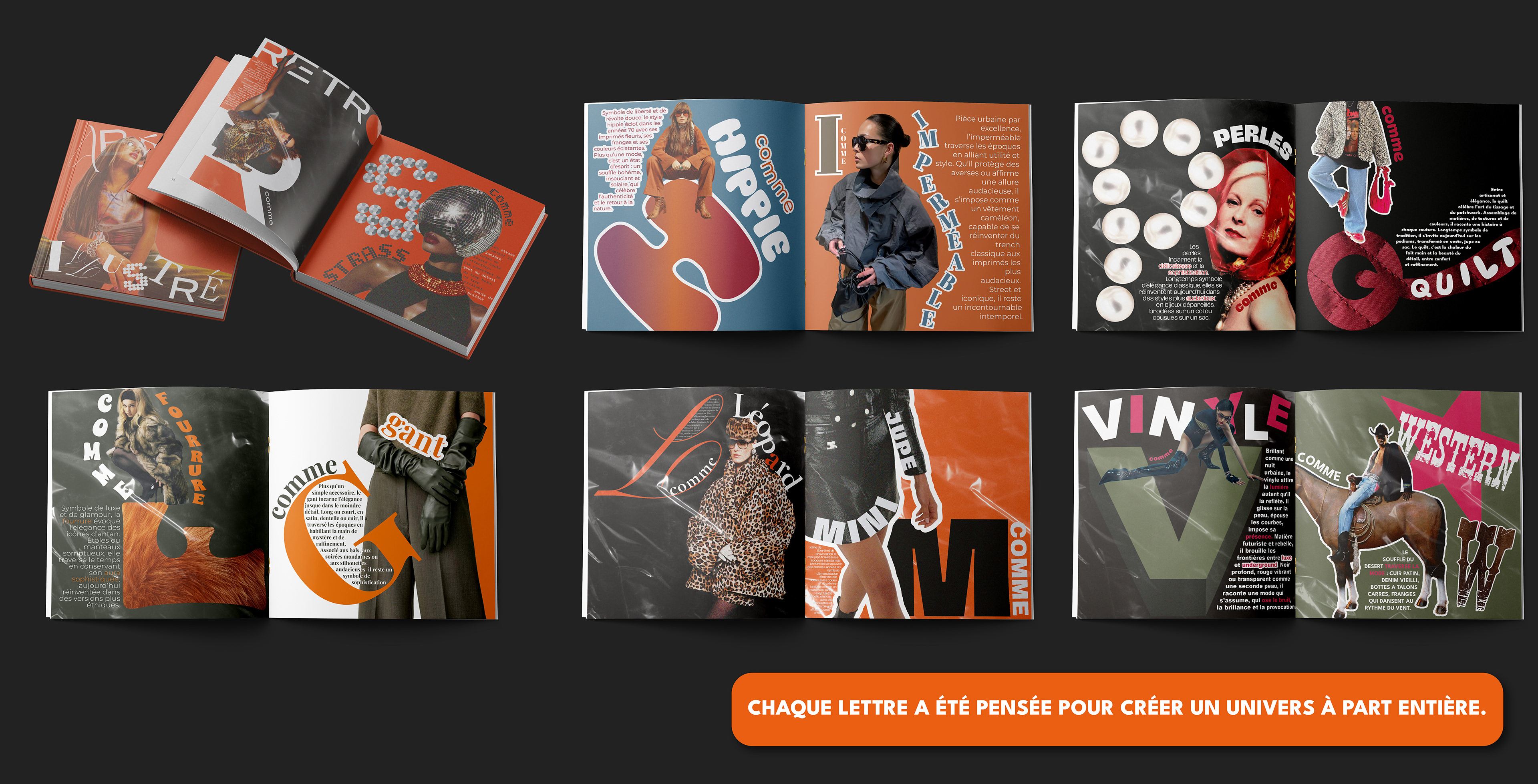 Chaque page mêle expérimentation typographique et mise en page soignée, pour donner vie à un ouvrage qui allie esthétisme, rythme visuel et sens du détail.